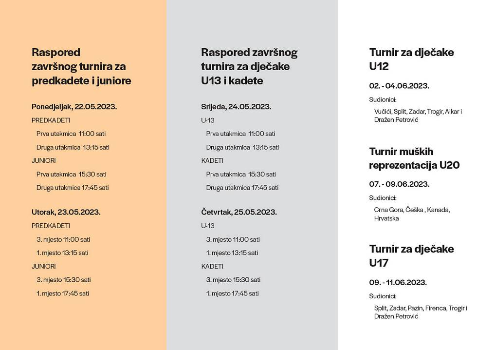 Već ovu subotu započinje završni turnir za djevojčice U-13, slijedi završni turnir za pretkadete i juniore te završni turnir za dječake U-13 i kadete. U lipnju slijede turniri za dječake U-12 i međunarodni turnir U-17.