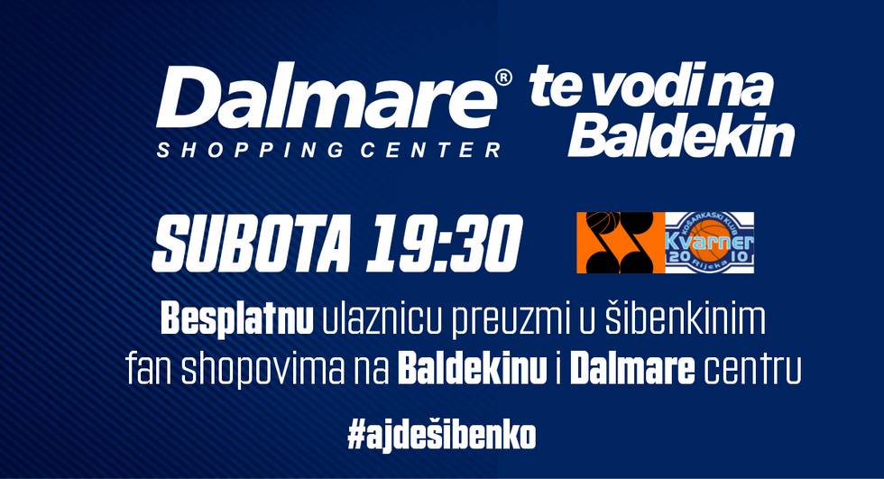 Dalmare shopping centar i Šibenka udružili su snage pred još jednu izuzetno važnu utakmicu Šibenke protiv Kvarnera 2010. U želji da napravimo sjajnu atmosferu na Baldekinu i omogućimo što veću podršku s tribina, Dalmare je svim navijačima osigurao besplatne ulaznice. Utakmica se igra u subotu, s početkom u 19:30 na Baldekinu.
