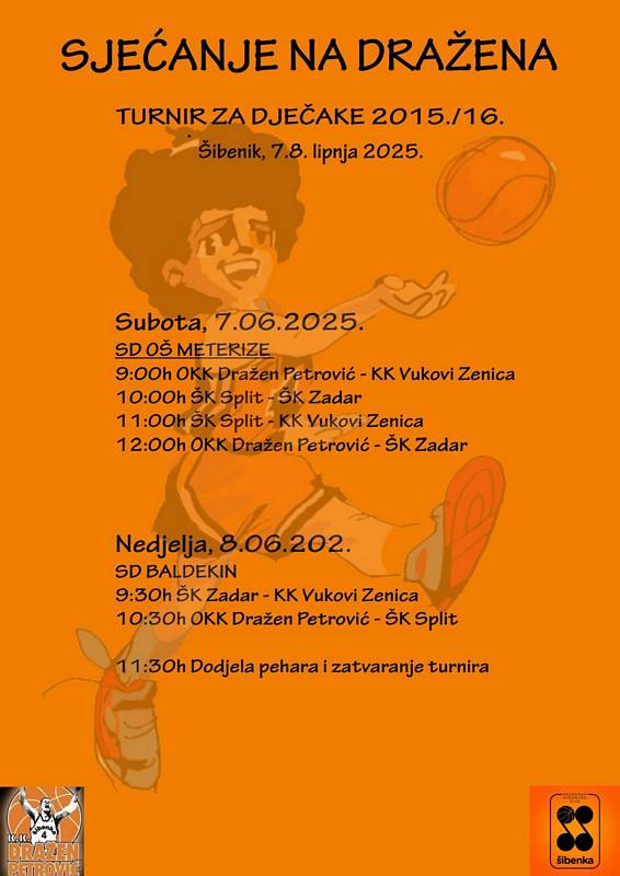 U čast Dražena Petrovića i u povodu 32. godišnjice njegove tragične pogibije, Škola košarke Dražen Petrović organizira međunarodni košarkaški turnir za dječake rođene 2015./2016. godine, koji će se održati u Šibeniku 7. i 8. lipnja 2025.