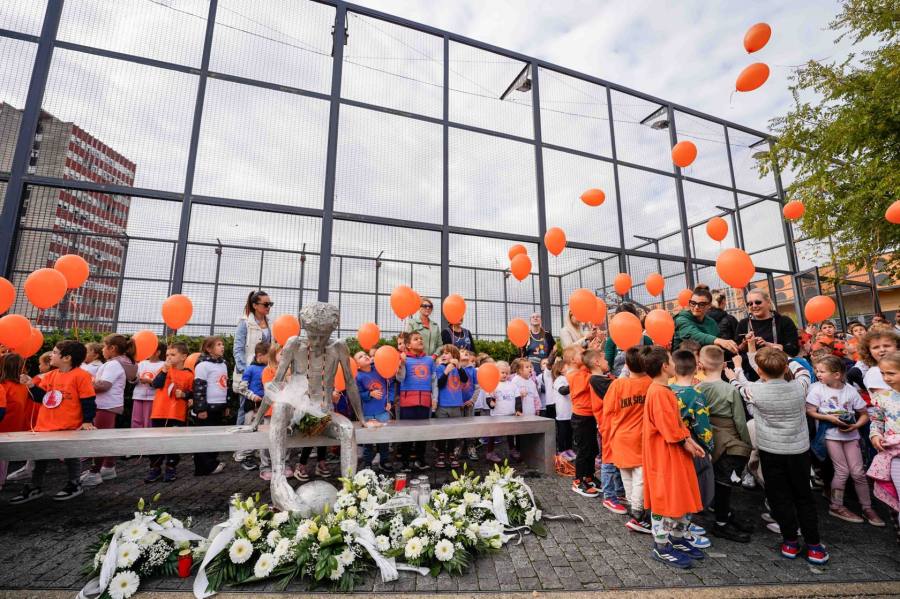 Djeca šibenskih vrtića, u pratnji svojih odgojiteljica, simboličnim su puštanjem balona odala počast Draženu Petroviću, sportašu čije su ime i djelo duboko utkani u identitet grada Šibenika.