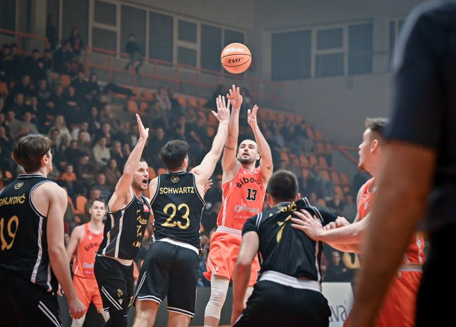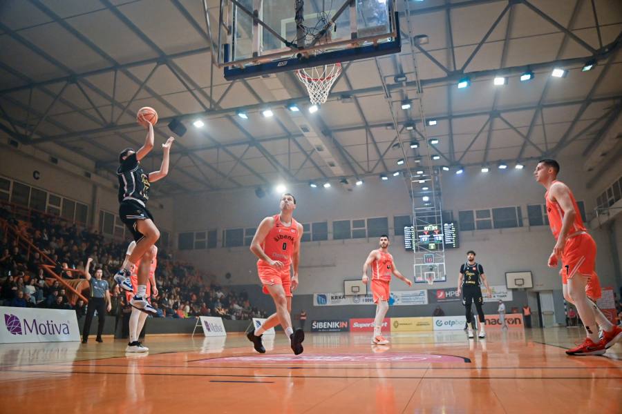 Prvo poluvrijeme Šibenka se držala čvrsto, disciplinirano. Mikšić je držao obranu, ali u napadu nije pronašao ritam, promašivši svih sedam šuteva. Planinić je također imao problema pod košem, a vanjski šut bio je izrazito slab (1/10 za tricu). Ipak, Šibenka je nakratko pobjegla na 27:18, no do velikog odmora prednost se istopila na skromnih 27:26.