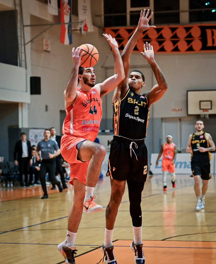 Druga dionica donijela je nešto ravnopravniju igru, bez većih oscilacija u rezultatu. U tom razdoblju istaknuo se Planinić s osam poena, dok je vanjski šut na obje strane bio daleko od idealnog. Šibenka je u prvom poluvremenu pogodila tek jednu tricu iz 11 pokušaja, a Split je, nakon uvodnih četiri pogođene, do odmora imao skromnih 2 od 16 iza linije 6,75.